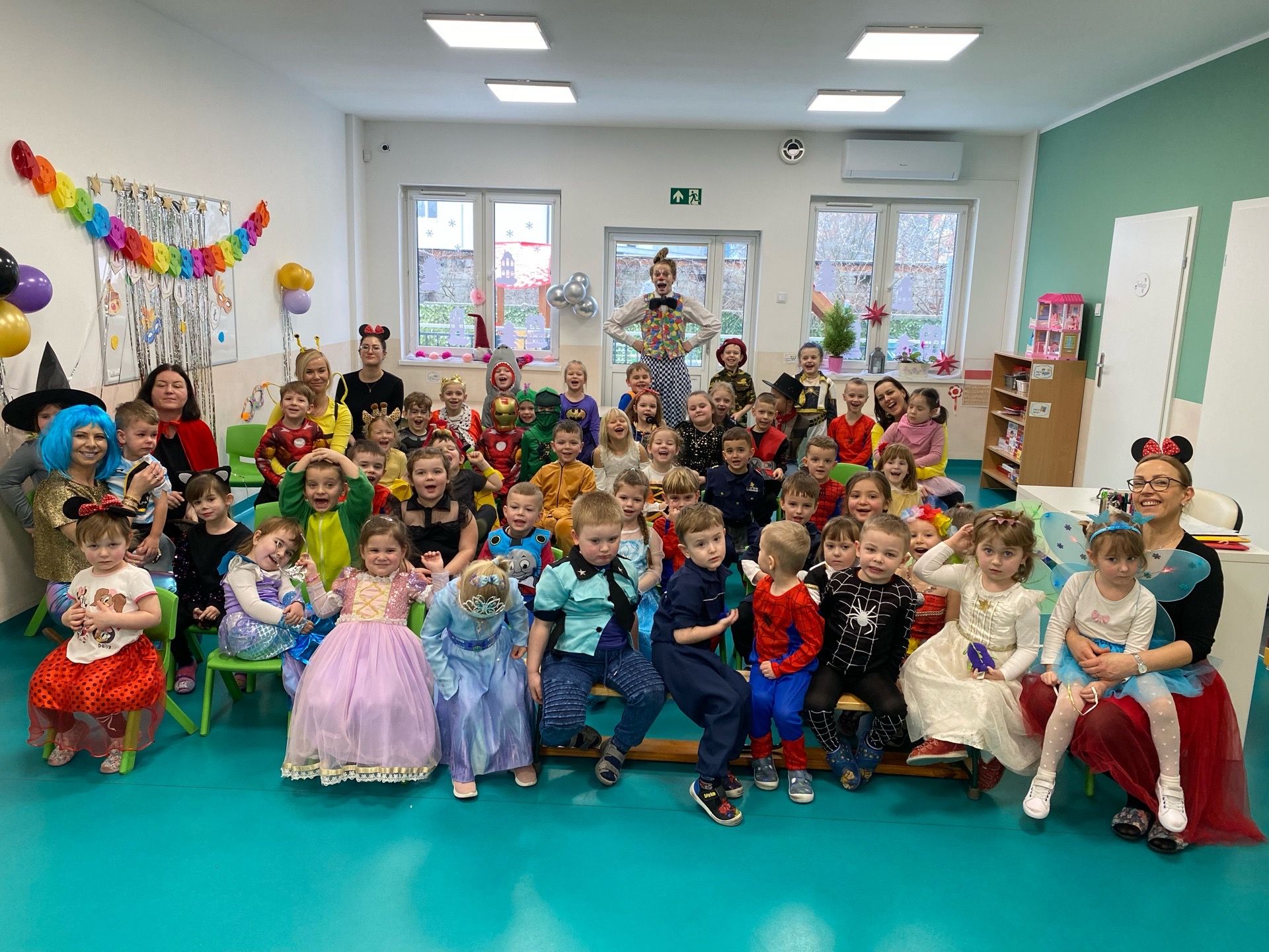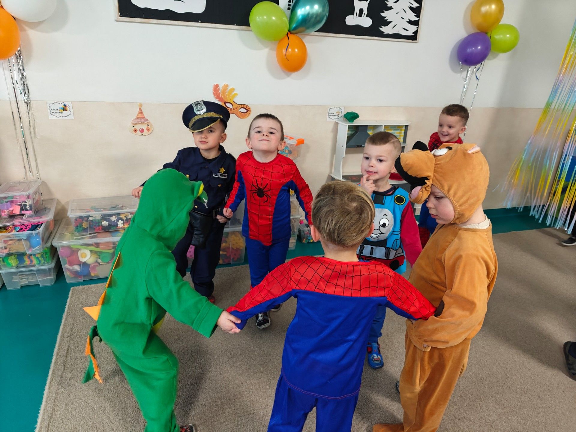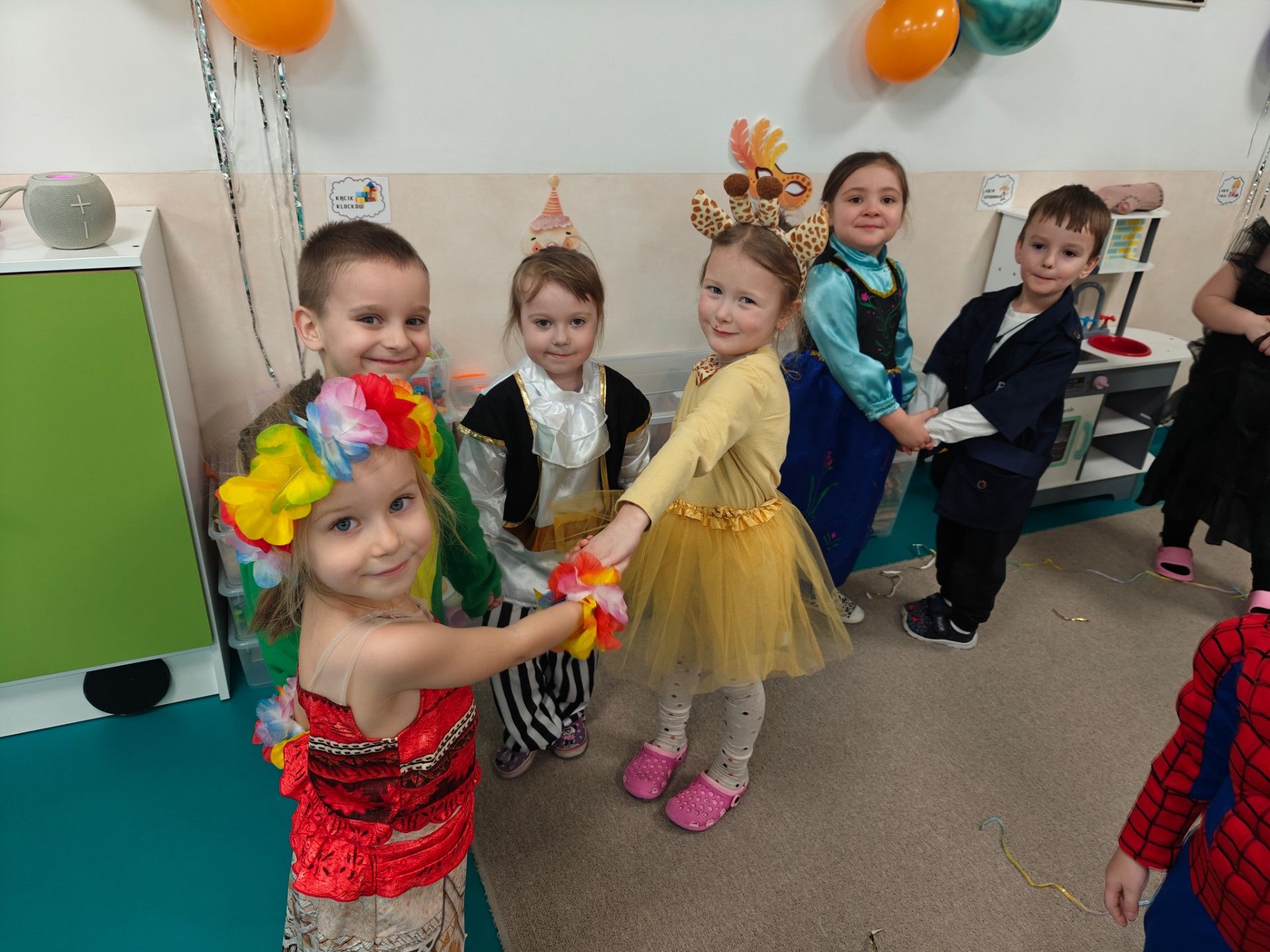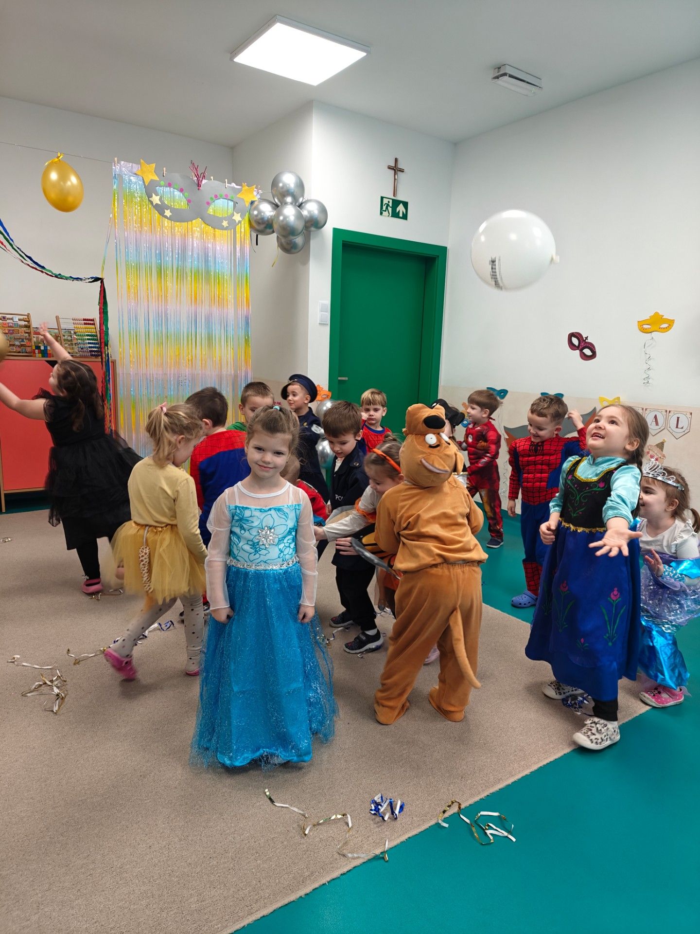 W naszym przedszkolu odbył się wyjątkowy bal karnawałowy! Dzieci przybyły w kolorowych przebraniach, przekształcając naszą placówkę w magiczne miejsce pełne małych księżniczek, super bohaterów i innych fantastycznych postaci. Zabawa rozpoczęła się energetycznymi tańcami, które dostarczyły wszystkim wiele radości i uśmiechu.