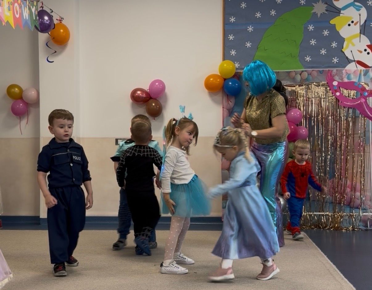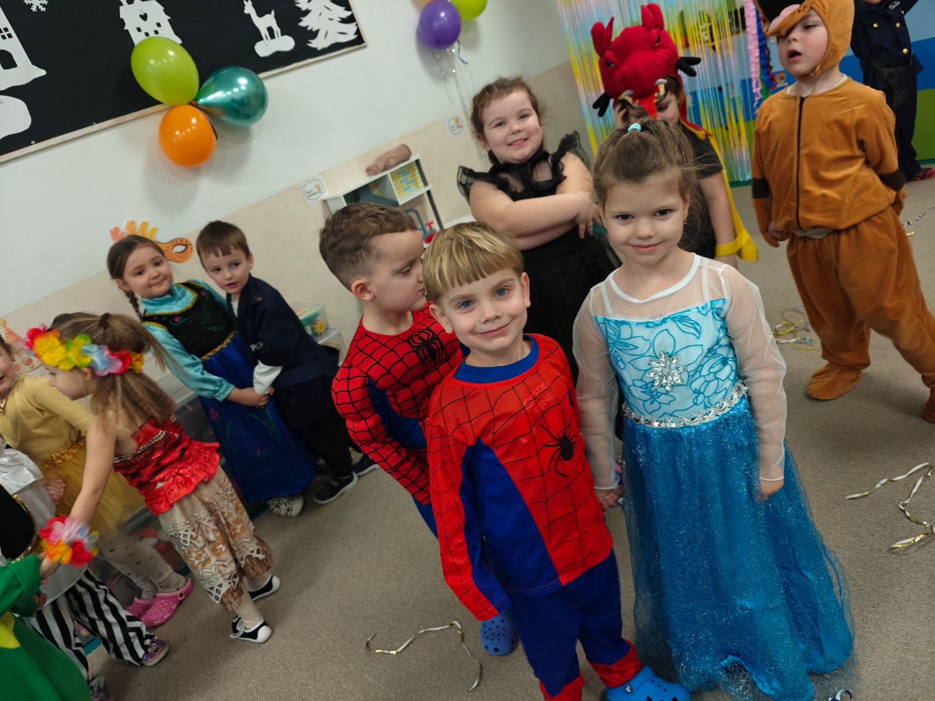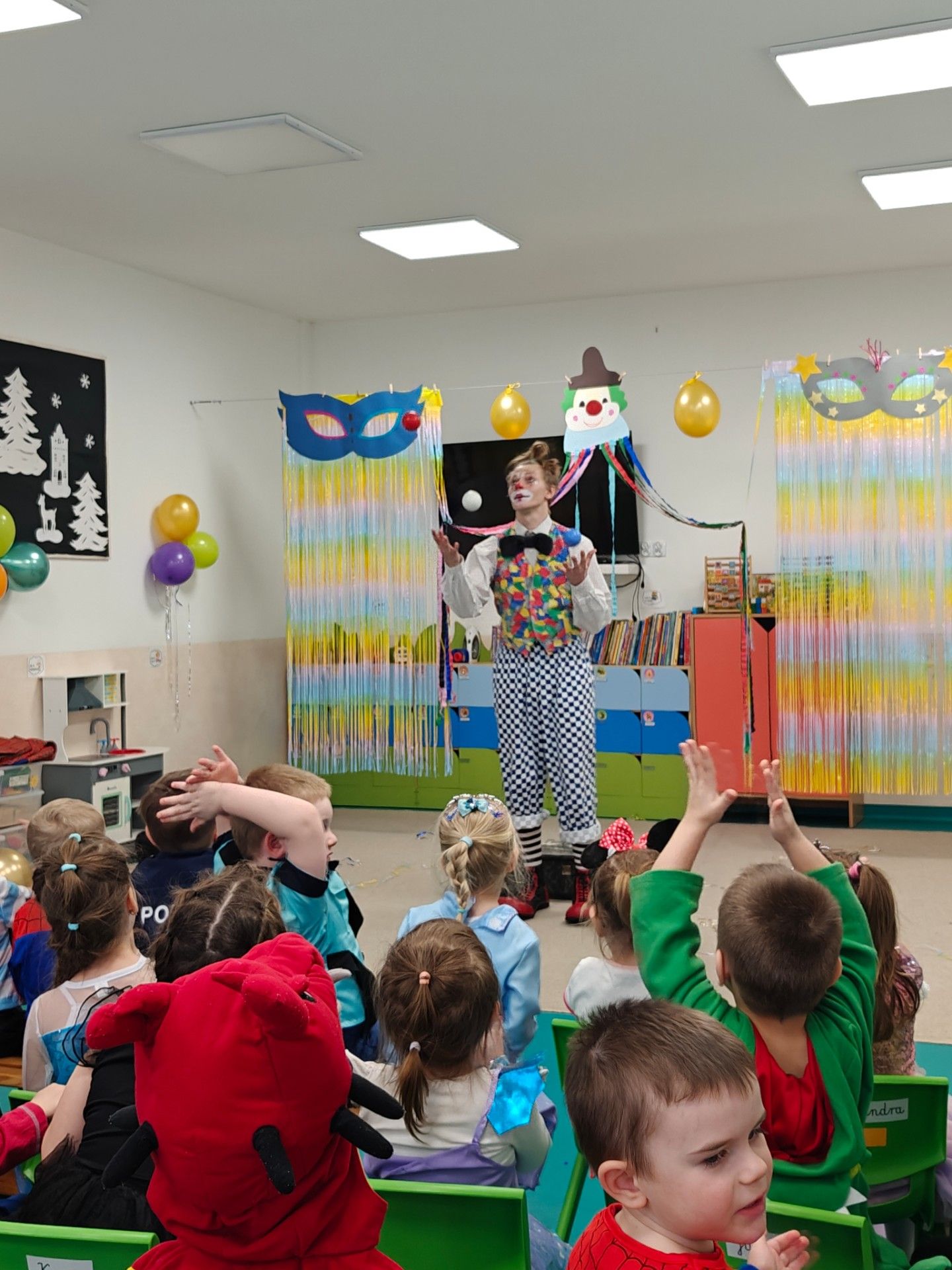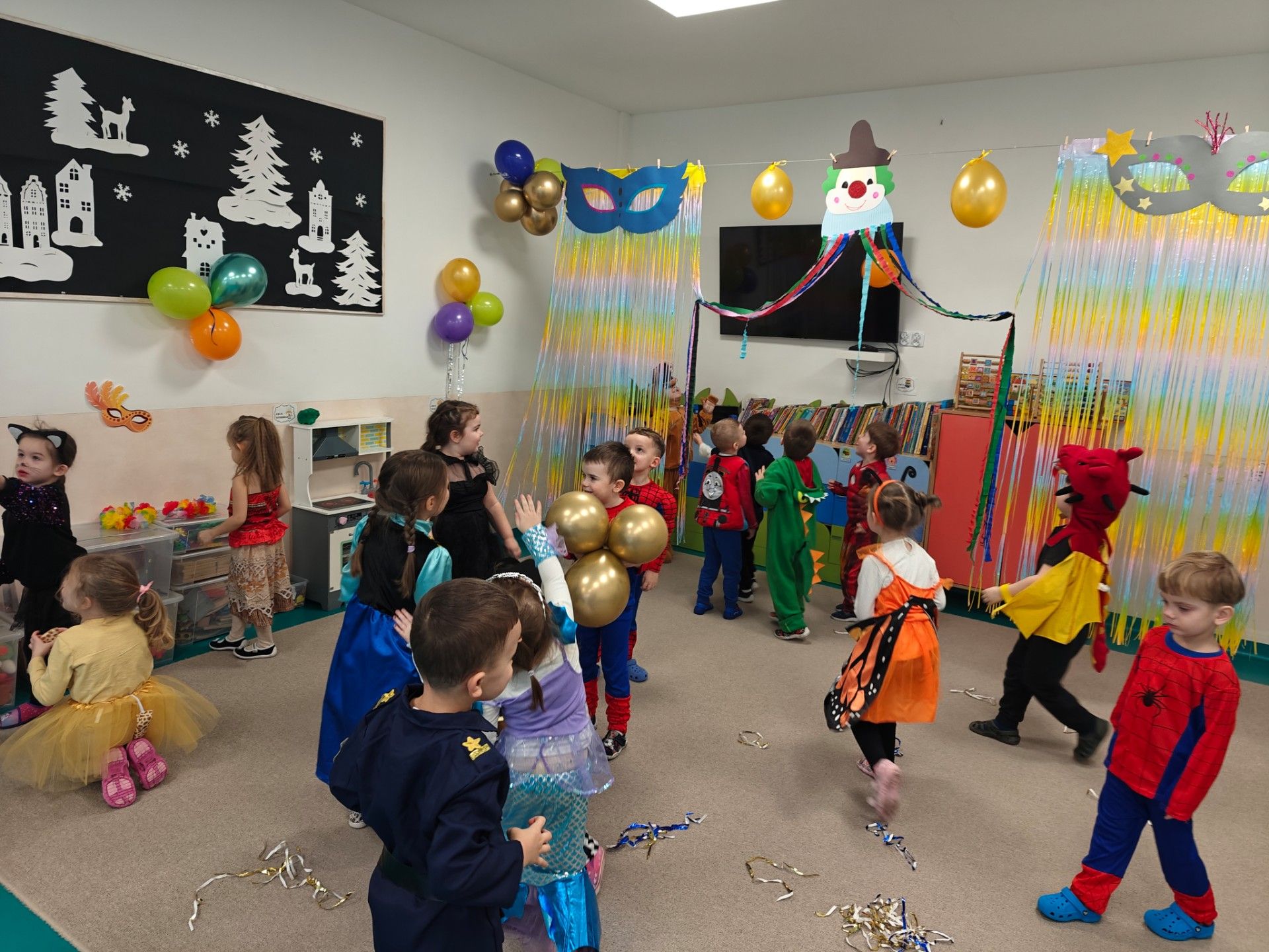 W naszym przedszkolu odbył się wyjątkowy bal karnawałowy! Dzieci przybyły w kolorowych przebraniach, przekształcając naszą placówkę w magiczne miejsce pełne małych księżniczek, super bohaterów i innych fantastycznych postaci. Zabawa rozpoczęła się energetycznymi tańcami, które dostarczyły wszystkim wiele radości i uśmiechu.