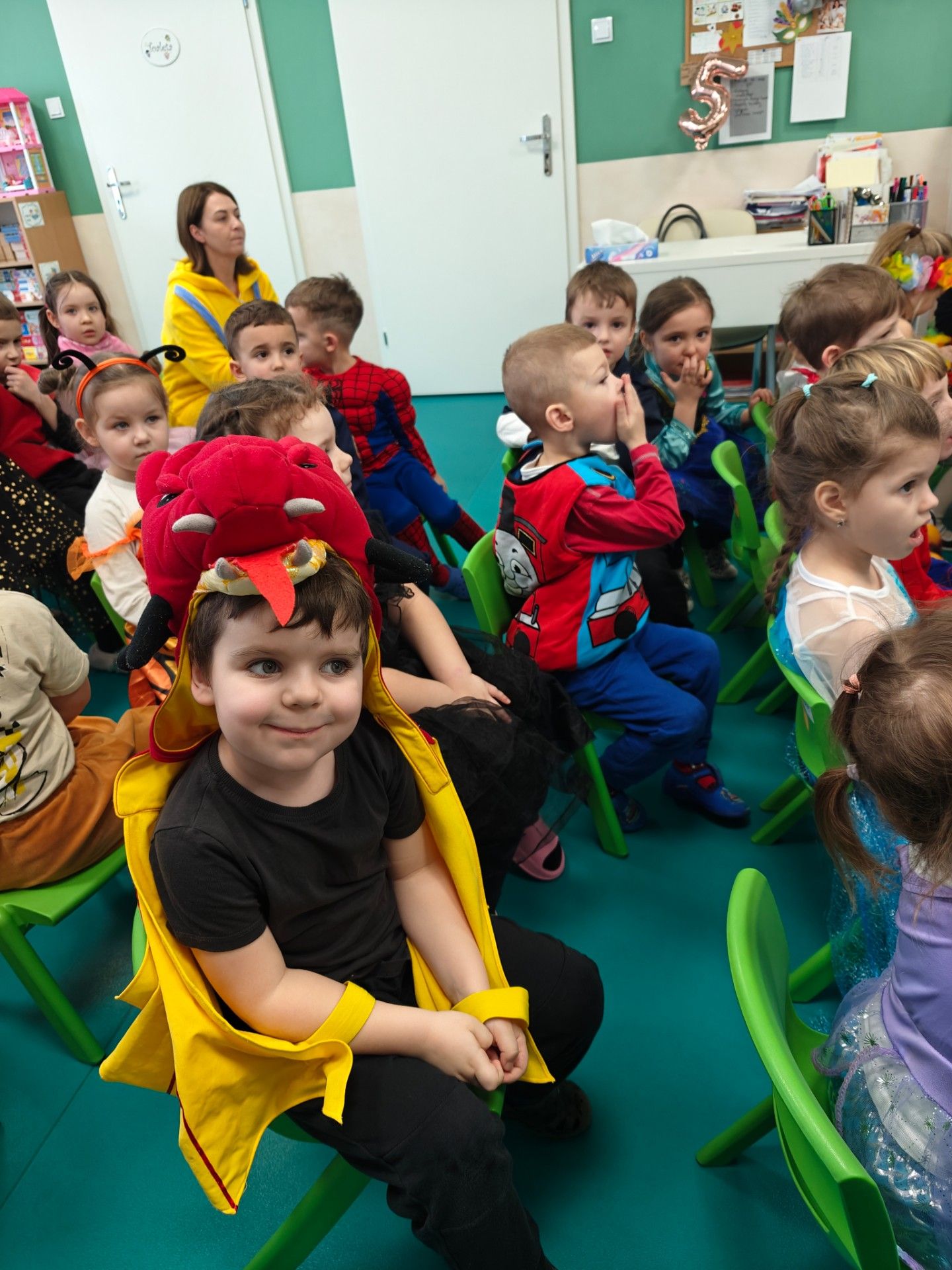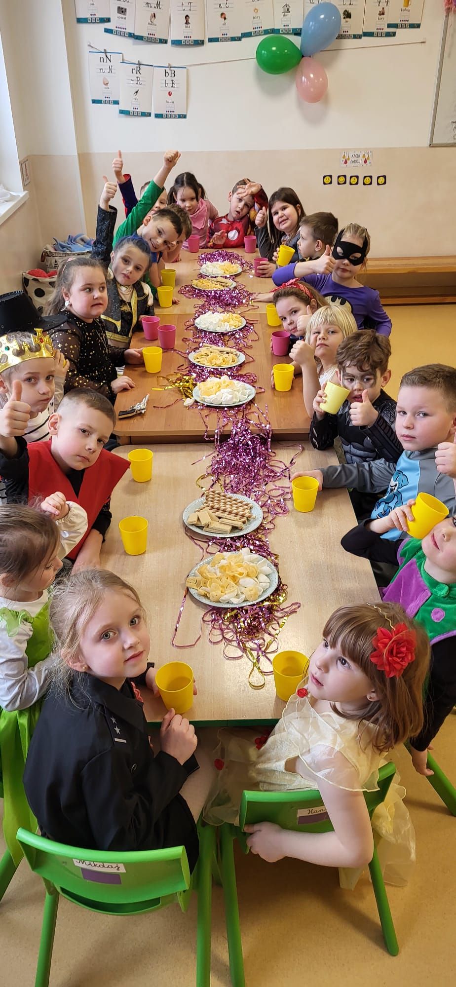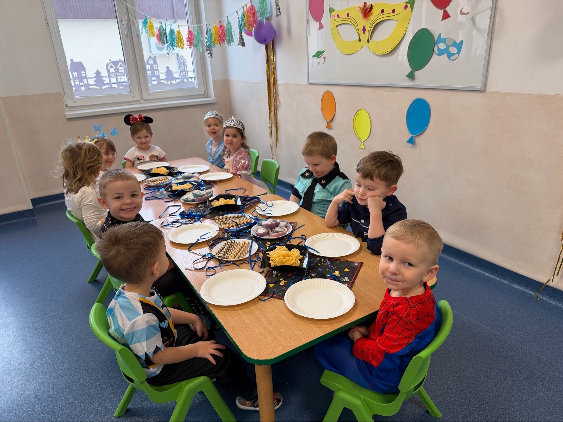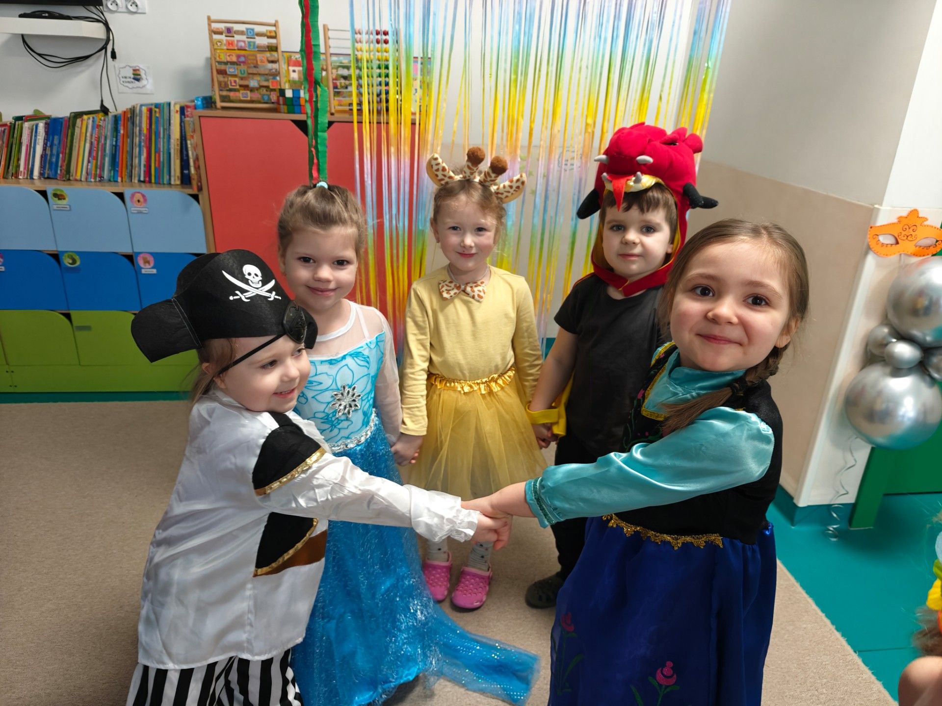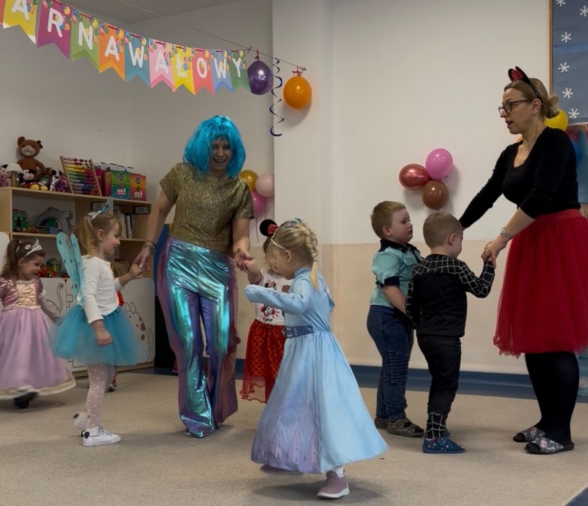 W naszym przedszkolu odbył się wyjątkowy bal karnawałowy! Dzieci przybyły w kolorowych przebraniach, przekształcając naszą placówkę w magiczne miejsce pełne małych księżniczek, super bohaterów i innych fantastycznych postaci. Zabawa rozpoczęła się energetycznymi tańcami, które dostarczyły wszystkim wiele radości i uśmiechu.