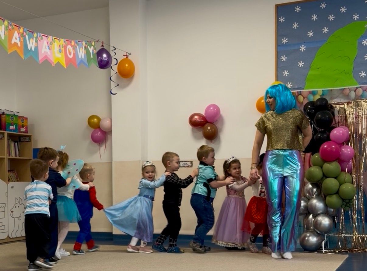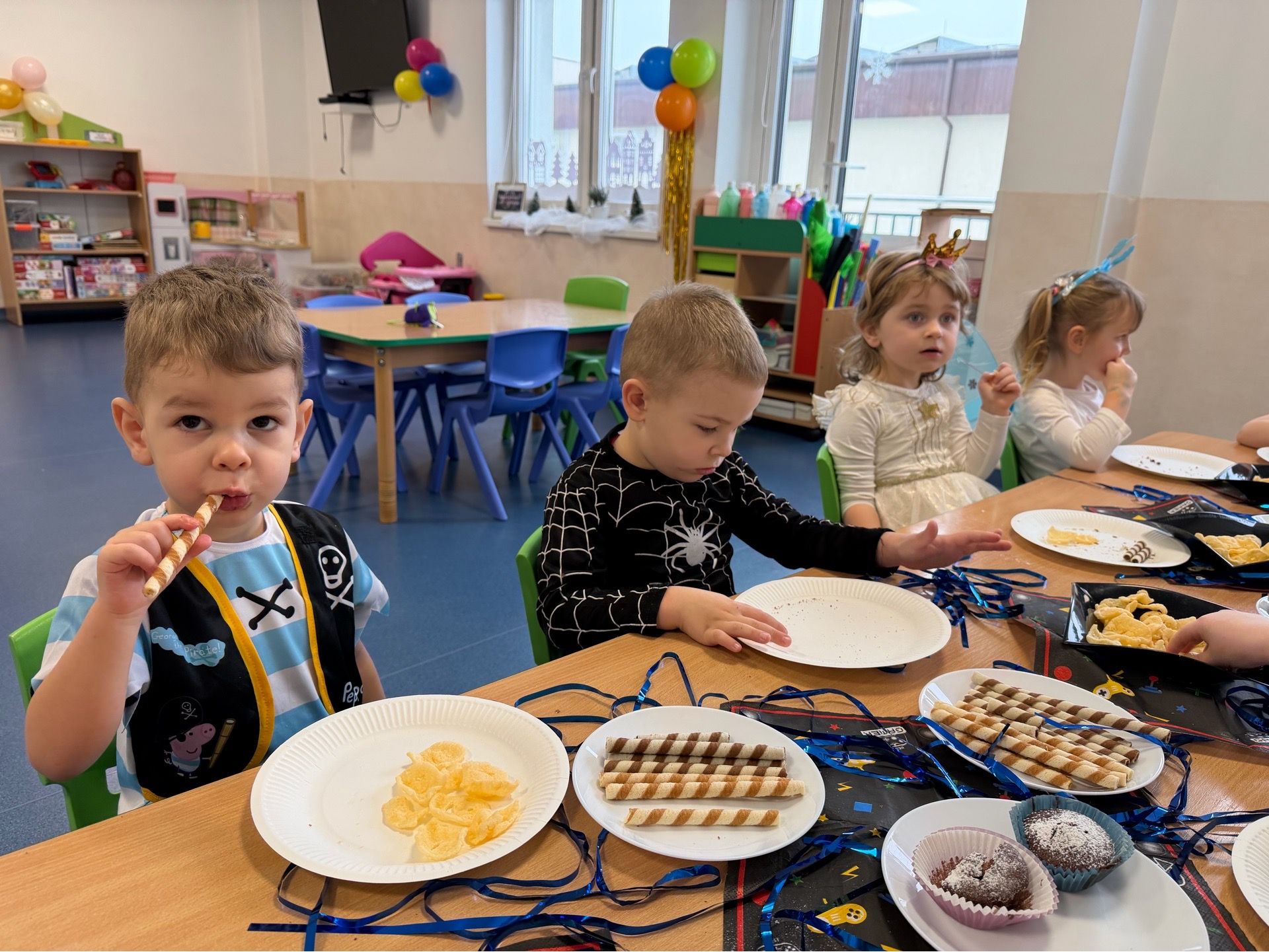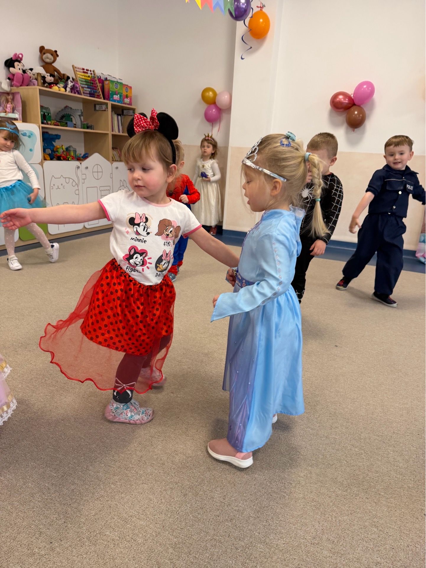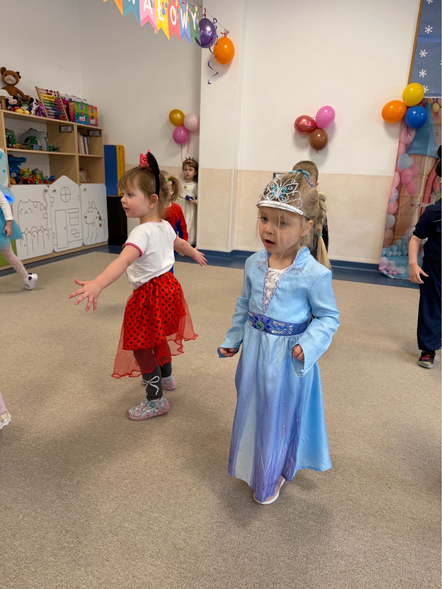 W naszym przedszkolu odbył się wyjątkowy bal karnawałowy! Dzieci przybyły w kolorowych przebraniach, przekształcając naszą placówkę w magiczne miejsce pełne małych księżniczek, super bohaterów i innych fantastycznych postaci. Zabawa rozpoczęła się energetycznymi tańcami, które dostarczyły wszystkim wiele radości i uśmiechu.
