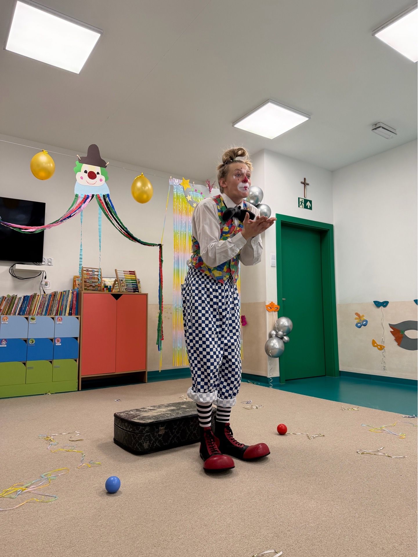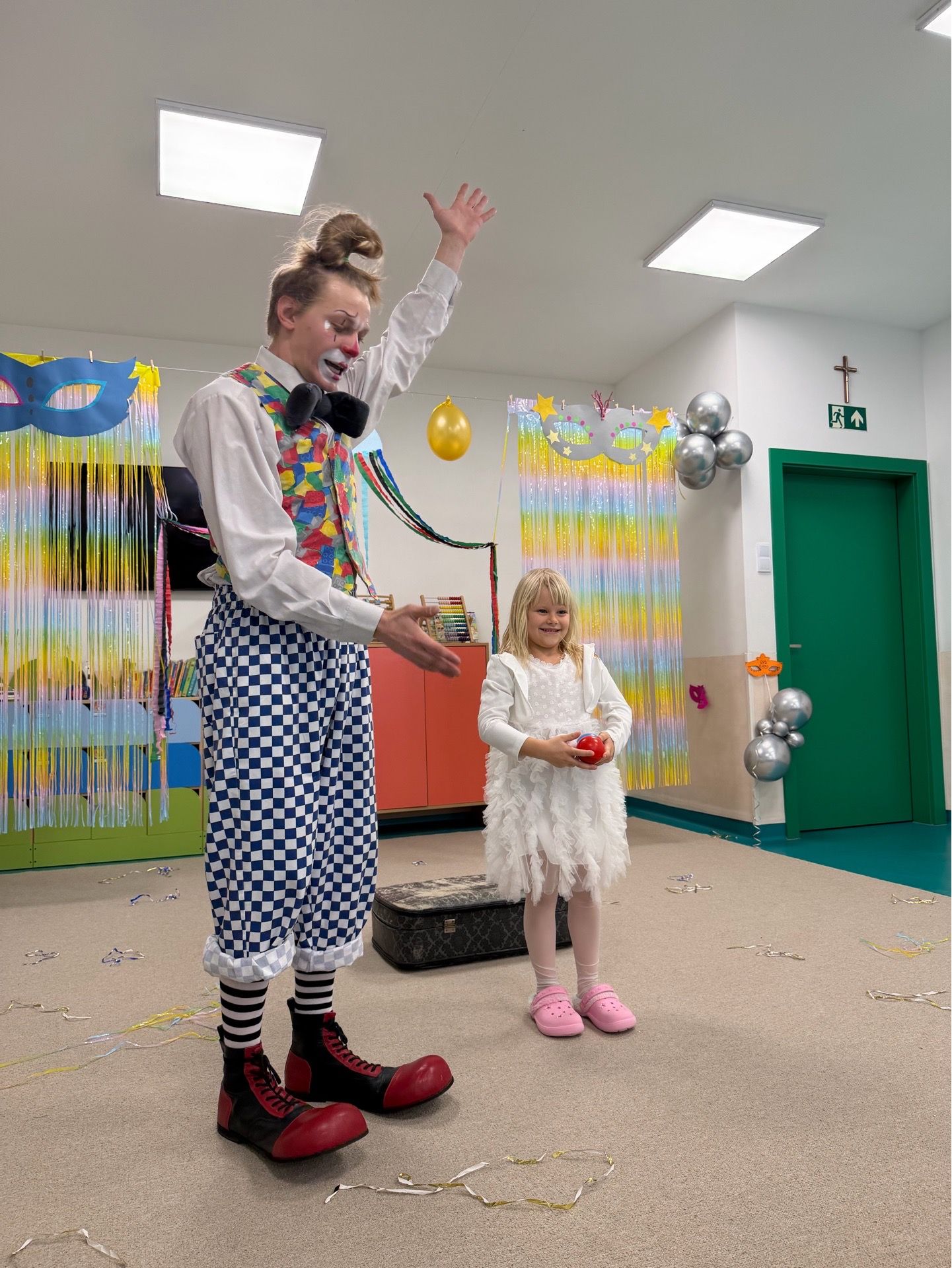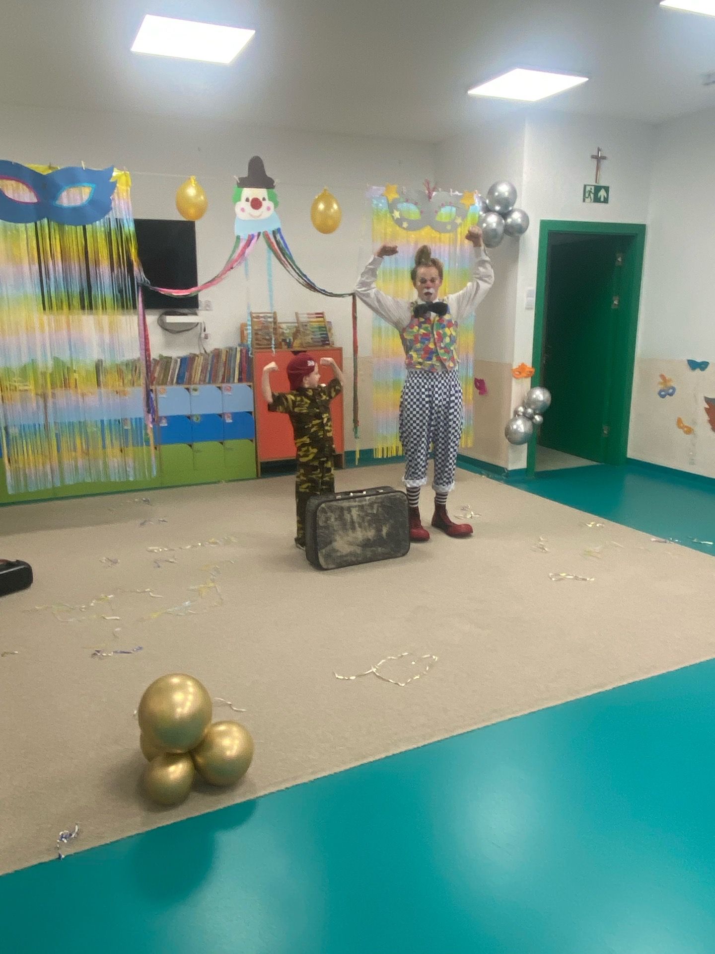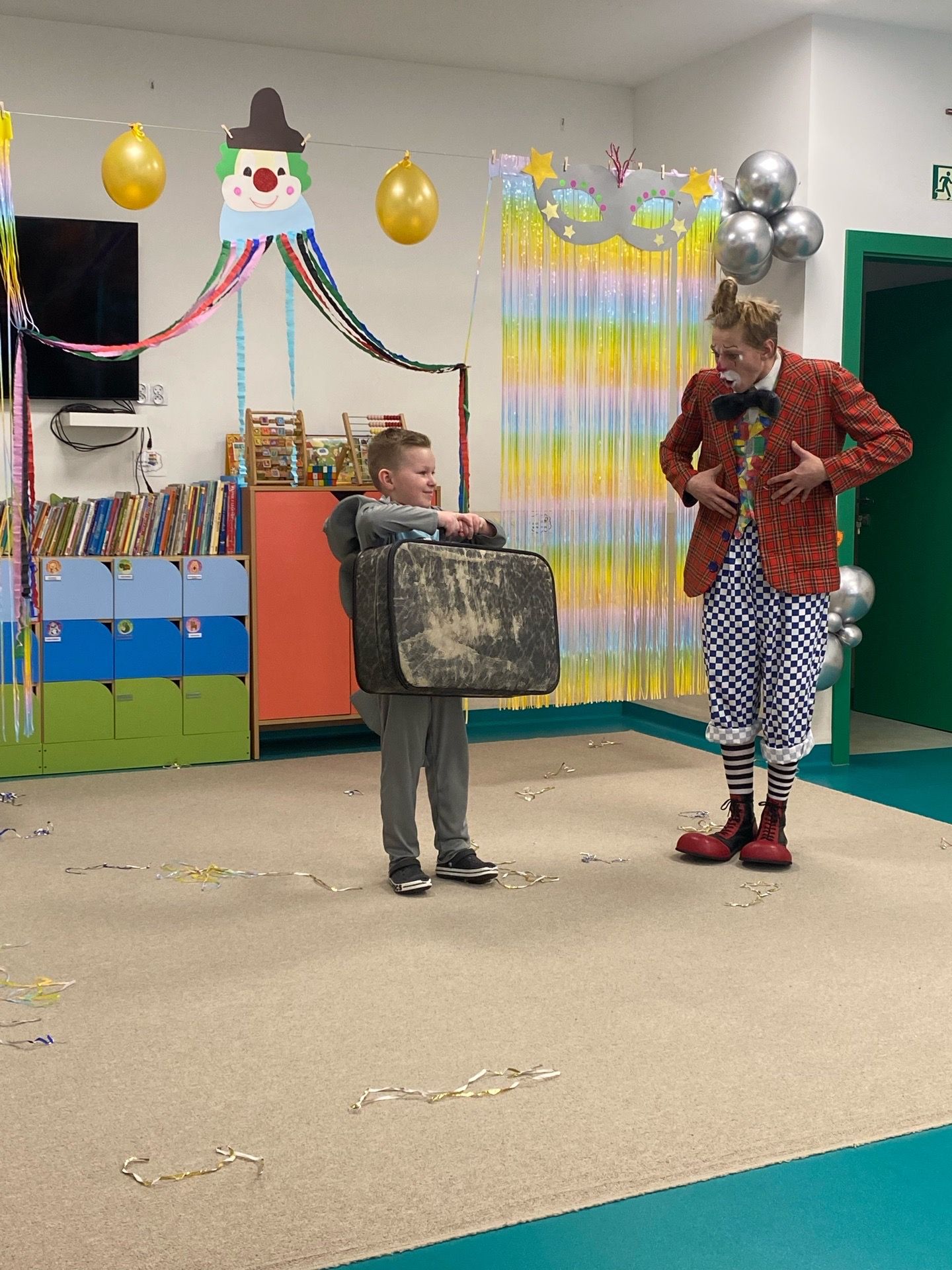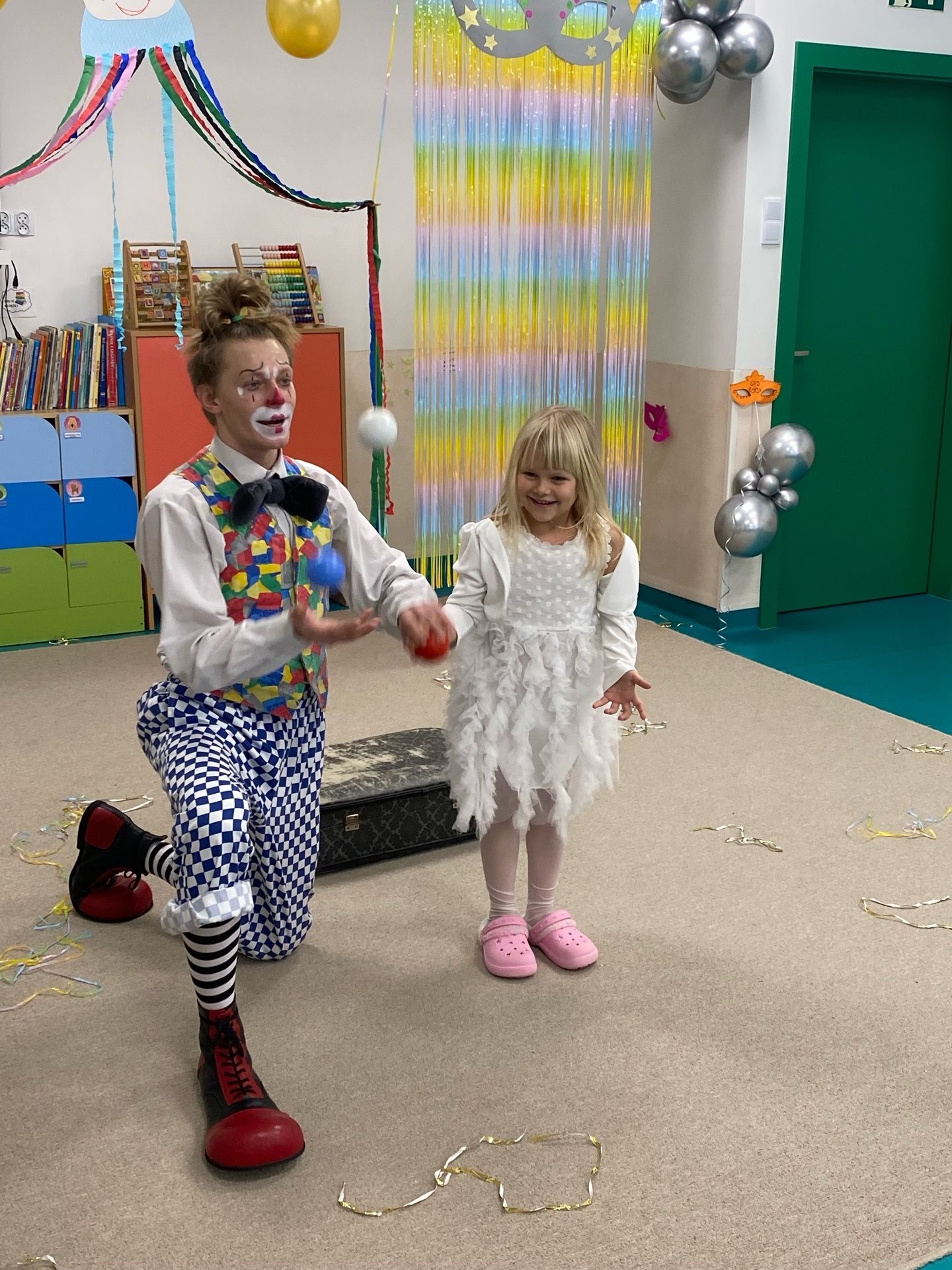 Na specjalną okazję zaprosiliśmy gościa – prawdziwego klauna, który rozbawił dzieci swoimi zabawnymi sztuczkami i pokazami. Jesteśmy przekonani, że dzięki tak wspaniałej atmosferze, ten dzień na długo pozostanie w pamięci wszystkich dzieci.