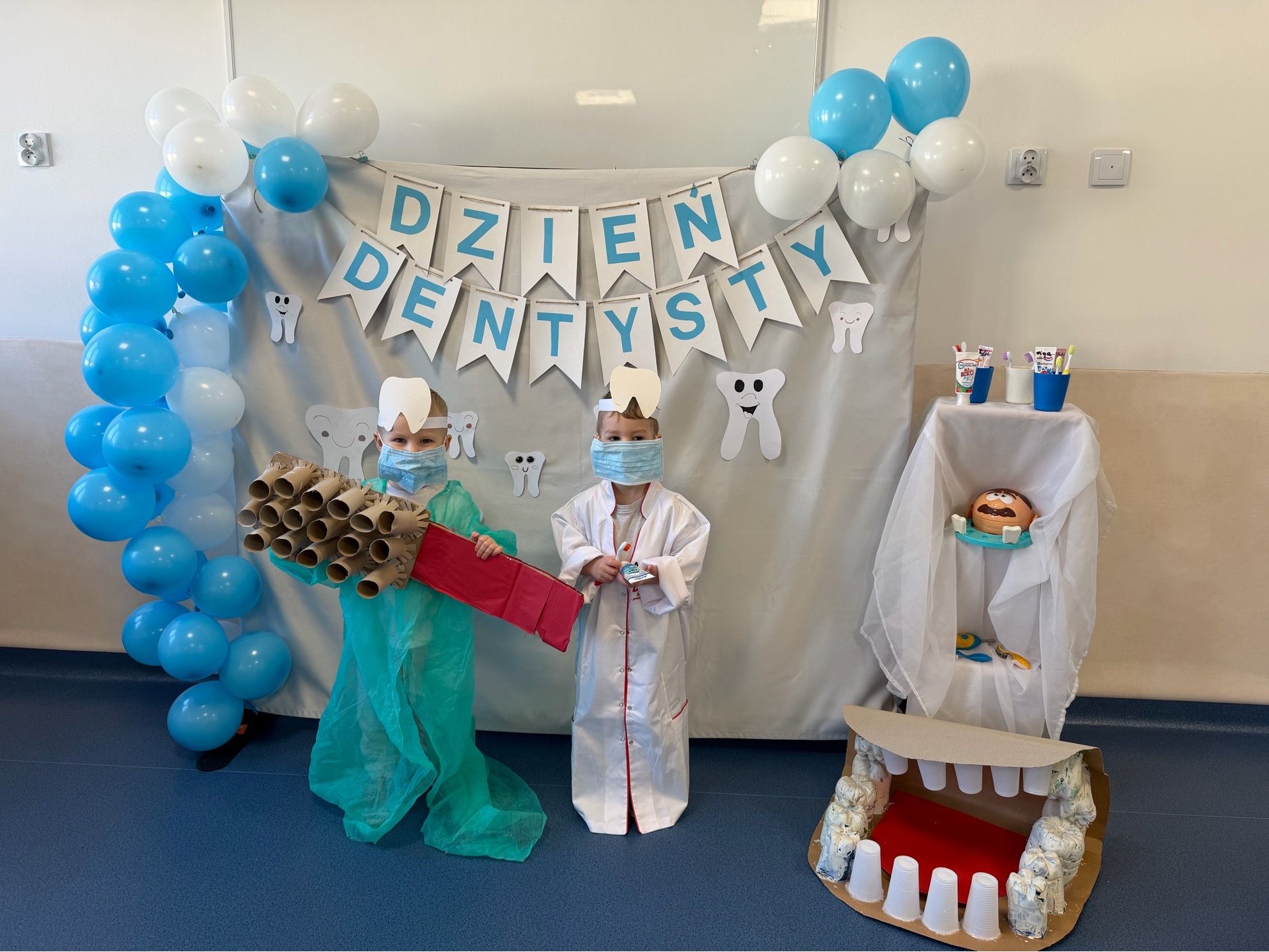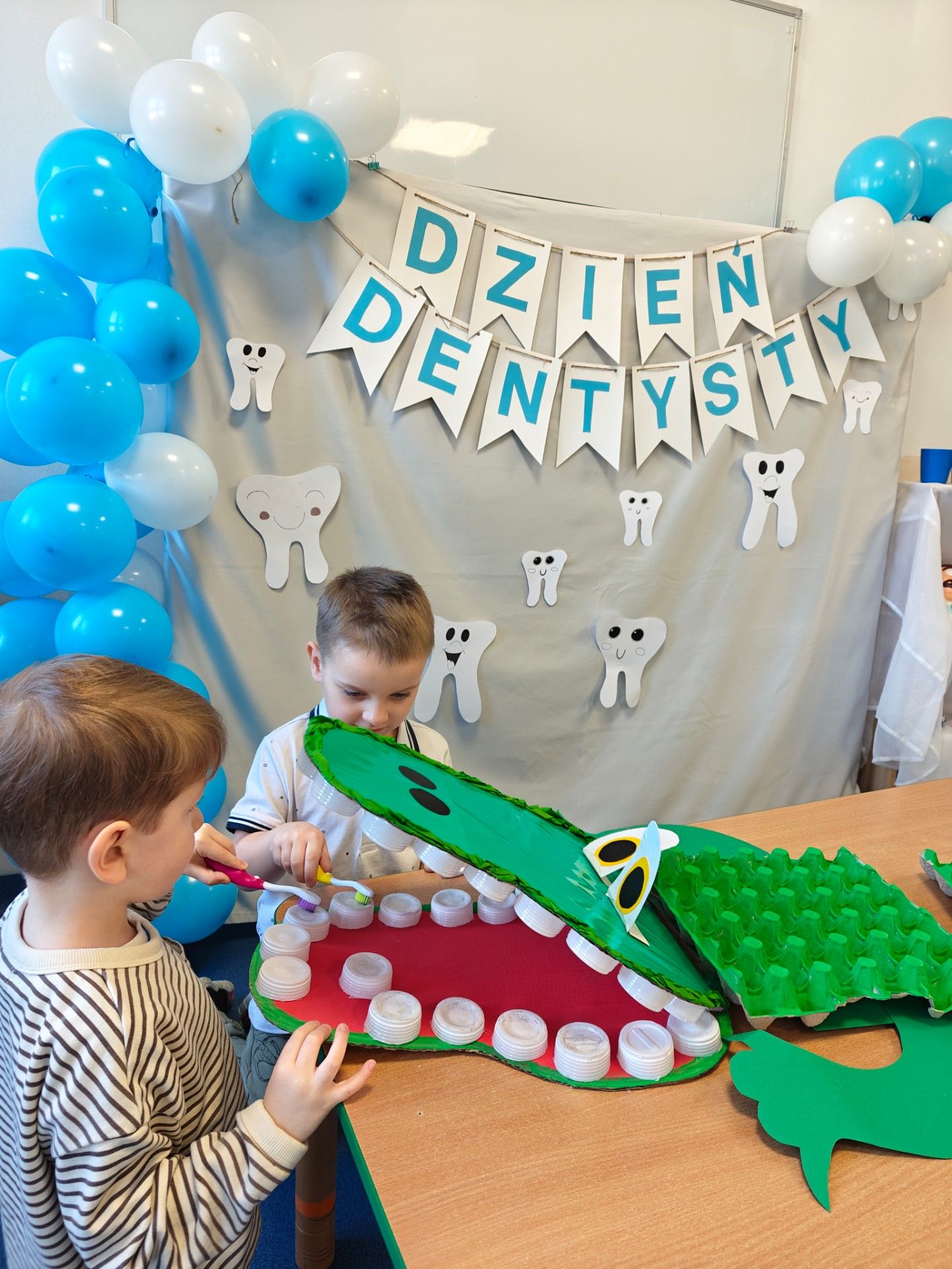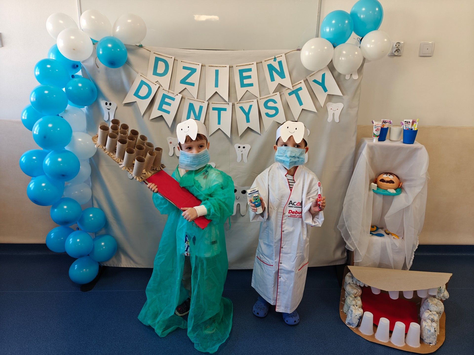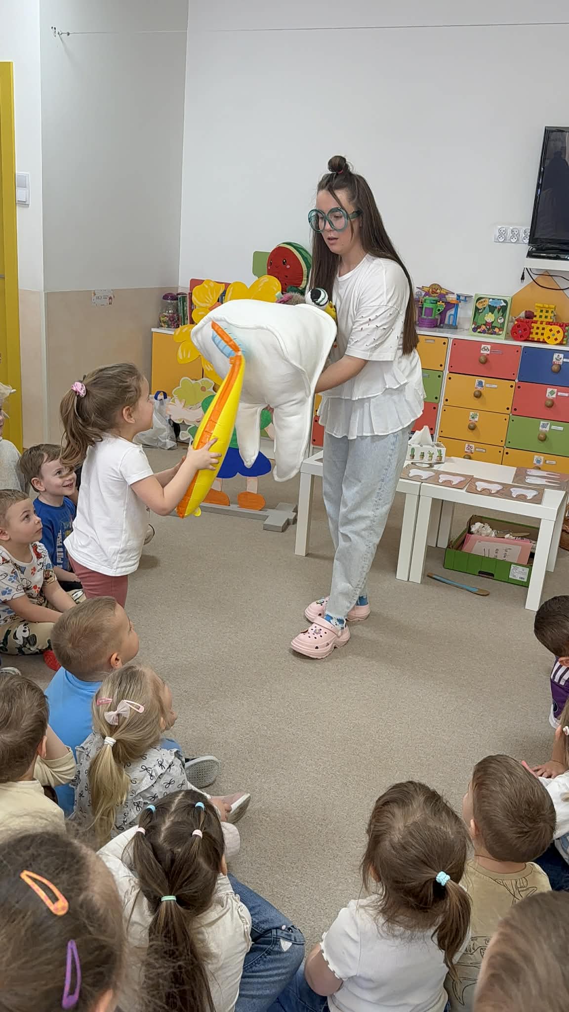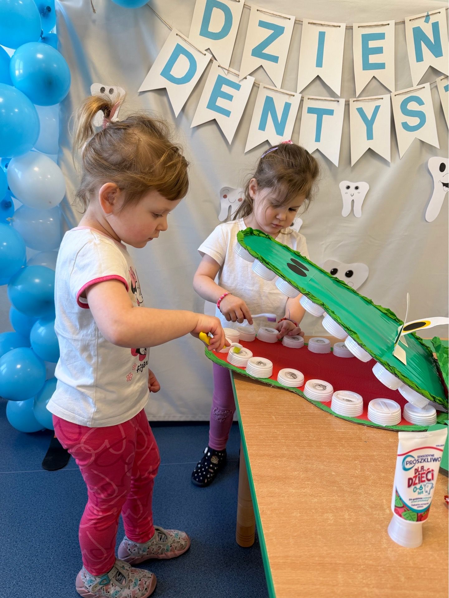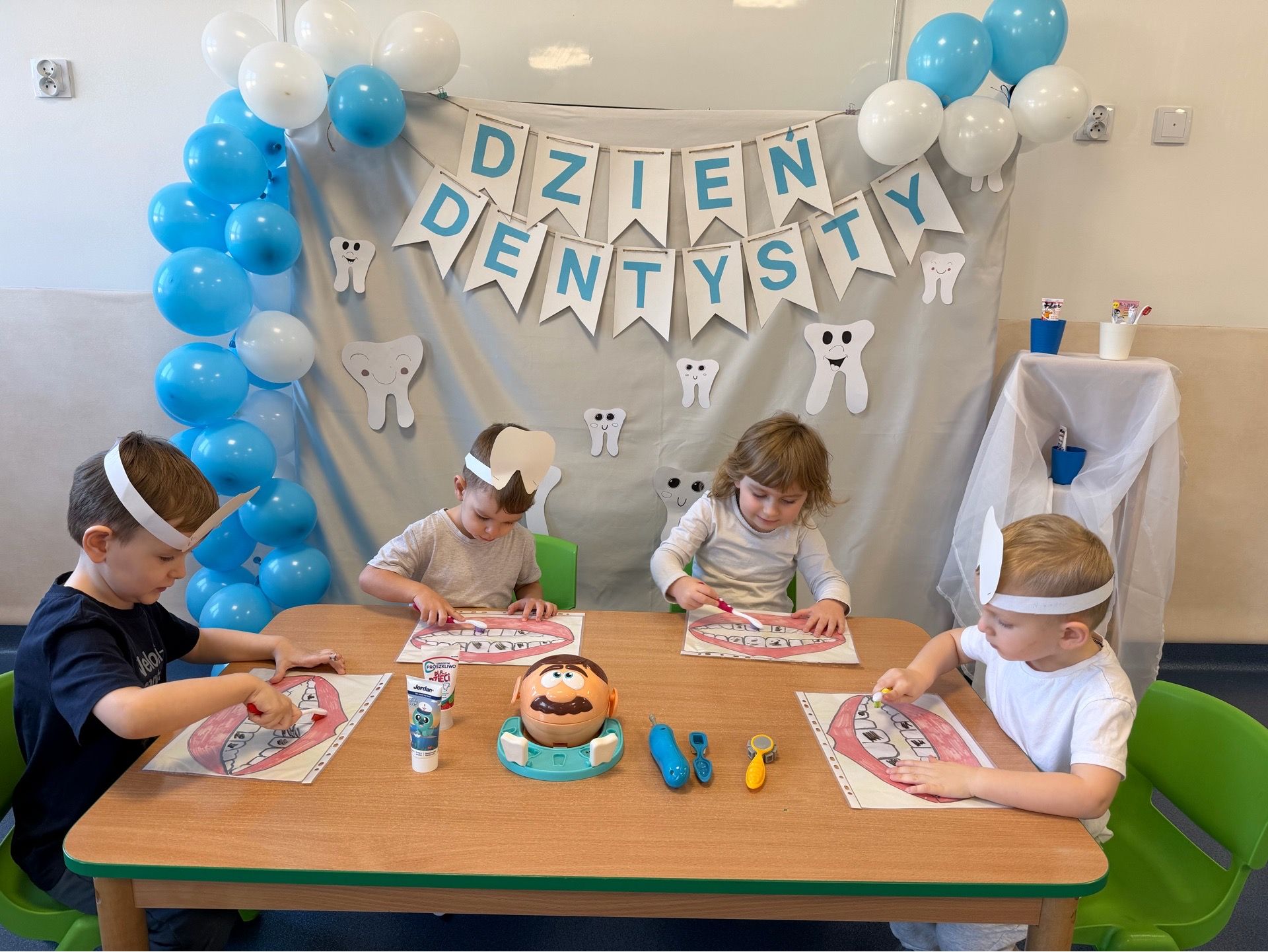 W czwartek, 05.3.2026r., w przedszkolu obchodziliśmy ,, Dzień dentysty ", z tej okazji odwiedziła nas Pani Adrianna Woźniak, która pracuje w centrum kultury i bibliotece w Piaskach. Demonstrowała dzieciom, jak dbać o higienę jamy ustnej. Bardzo dziękujemy za wizytę oraz pozostawiony prezent w formie książeczki :)