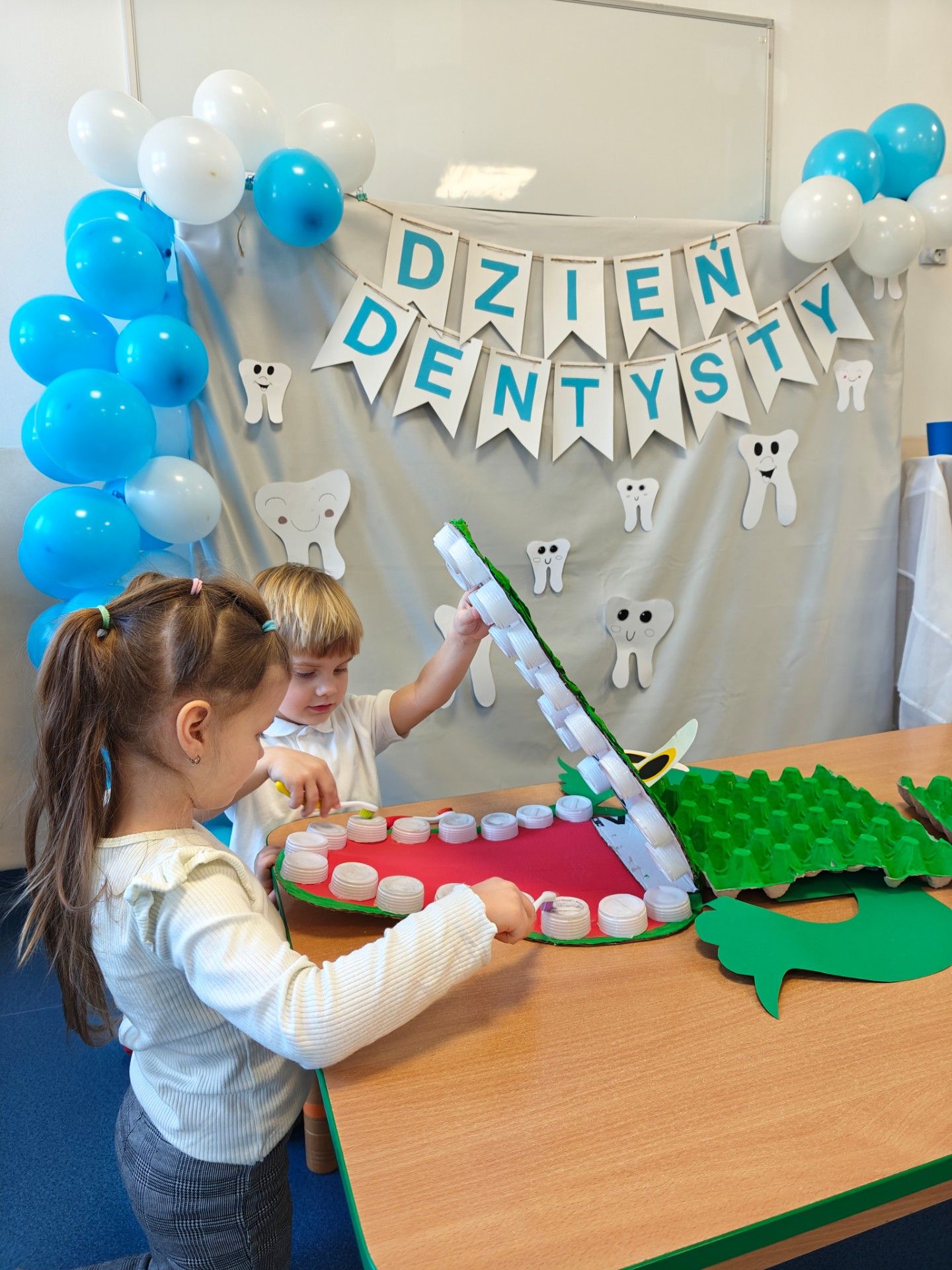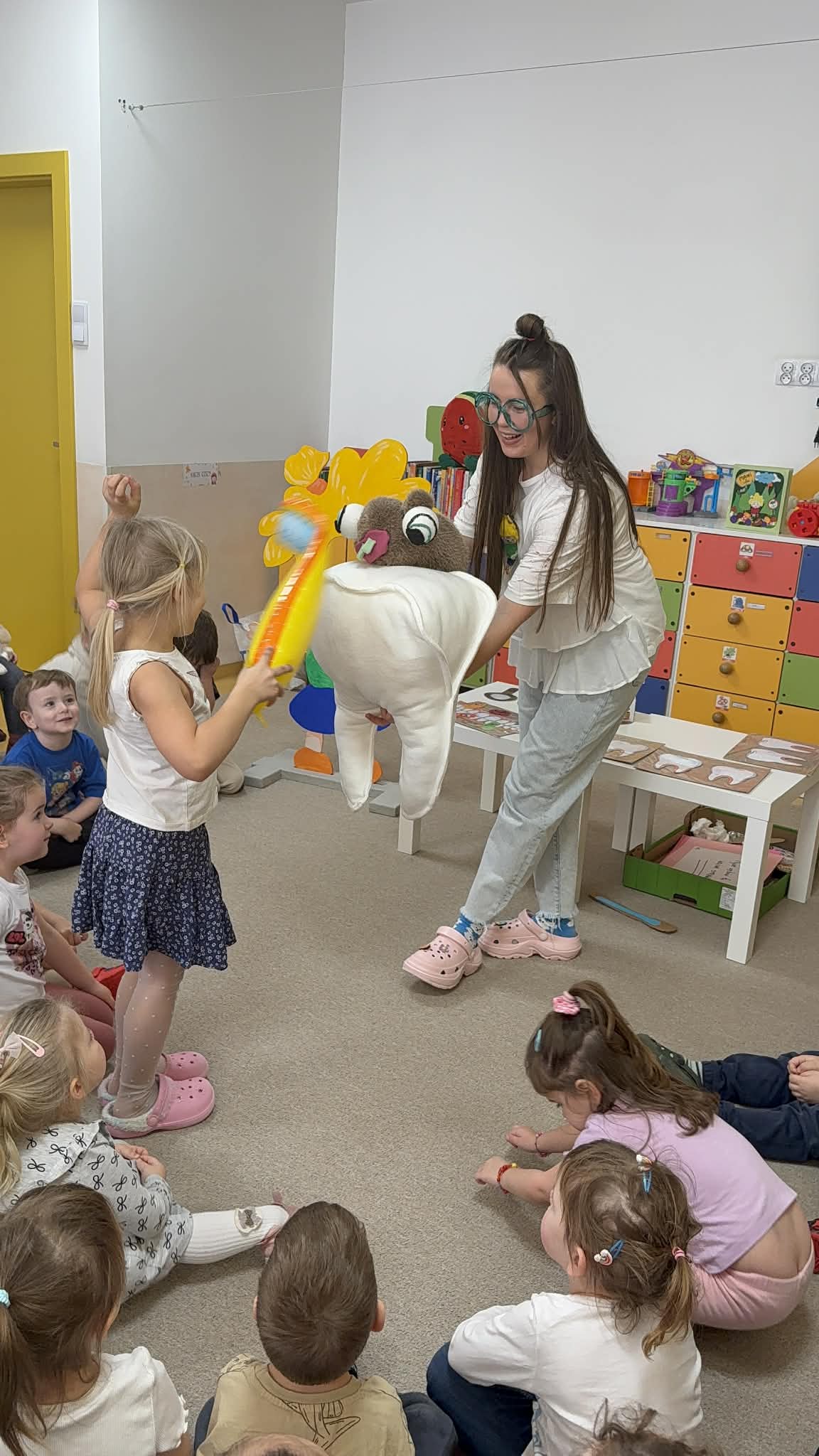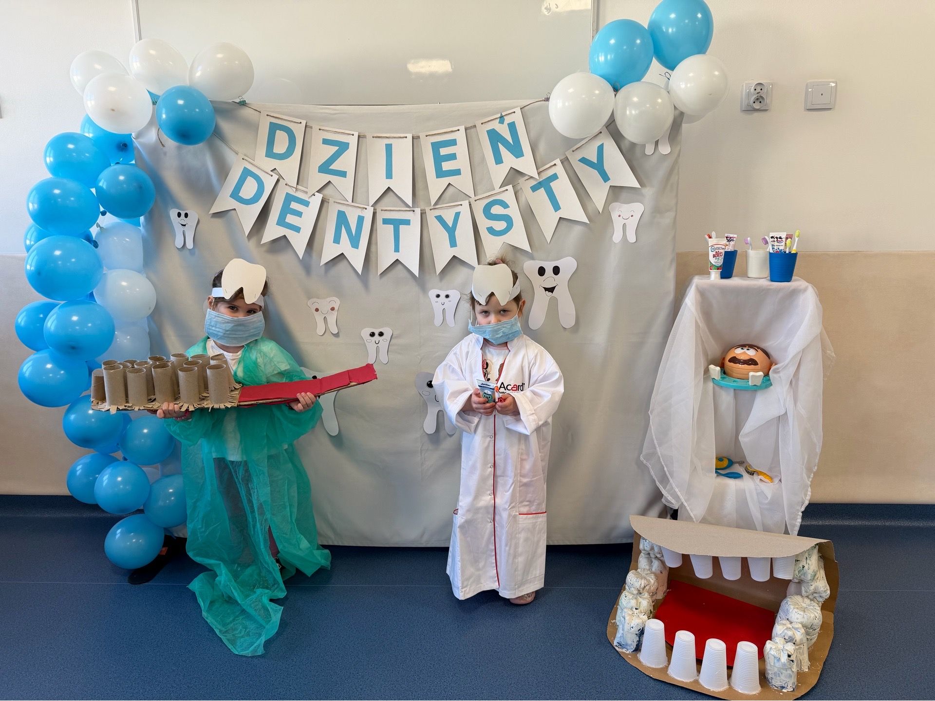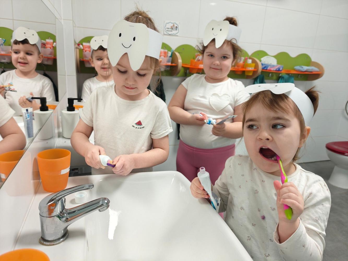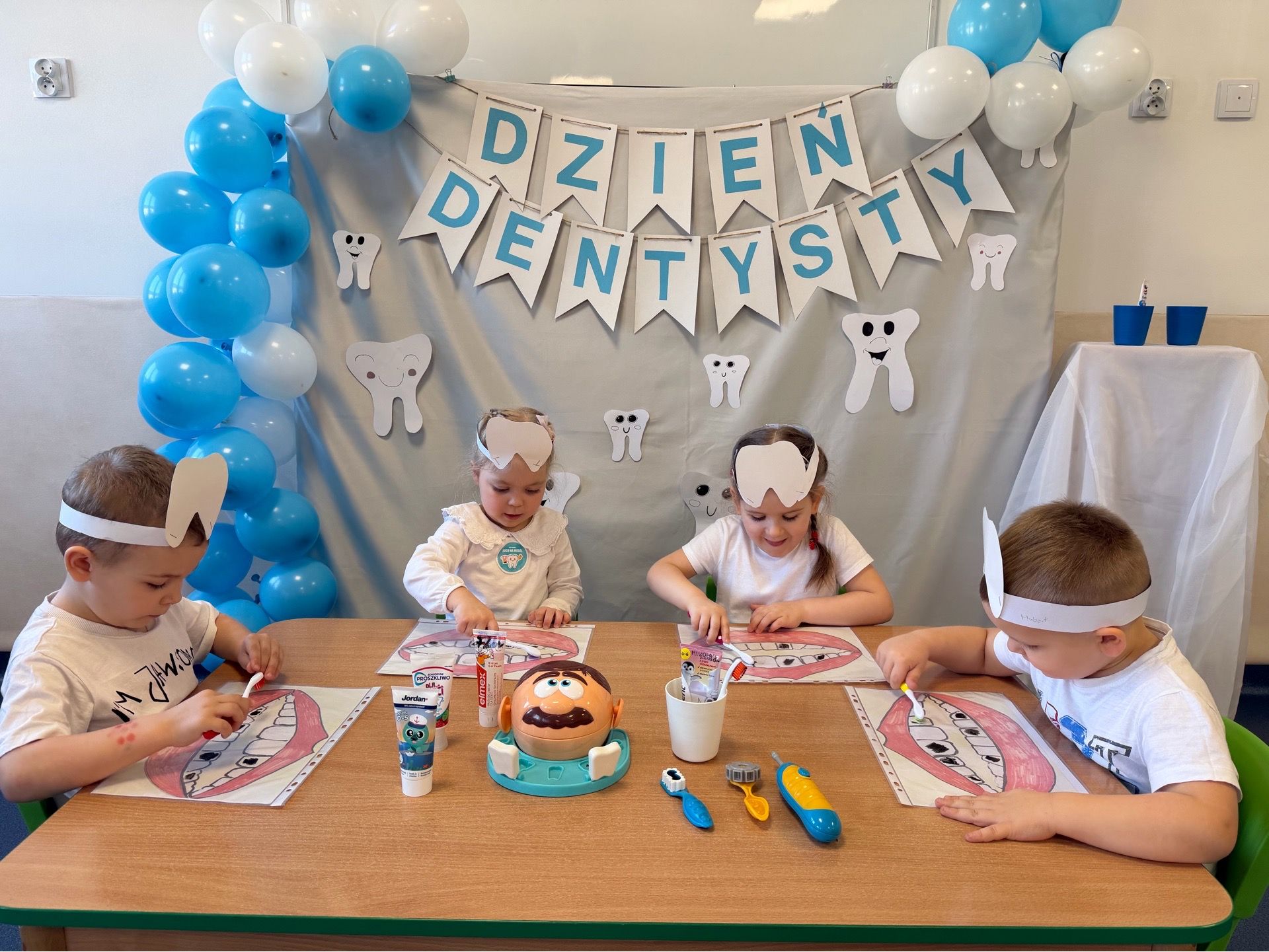 W czwartek, 05.3.2026r., w przedszkolu obchodziliśmy ,, Dzień dentysty ", z tej okazji odwiedziła nas Pani Adrianna Woźniak, która pracuje w centrum kultury i bibliotece w Piaskach. Demonstrowała dzieciom, jak dbać o higienę jamy ustnej. Bardzo dziękujemy za wizytę oraz pozostawiony prezent w formie książeczki :)