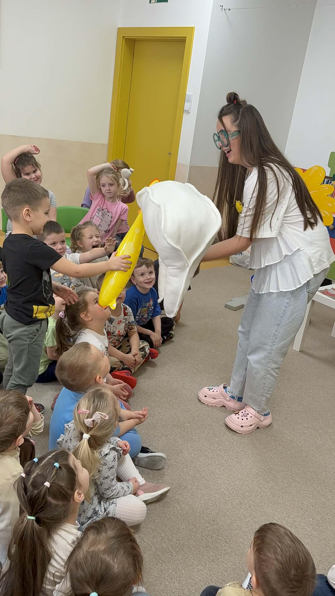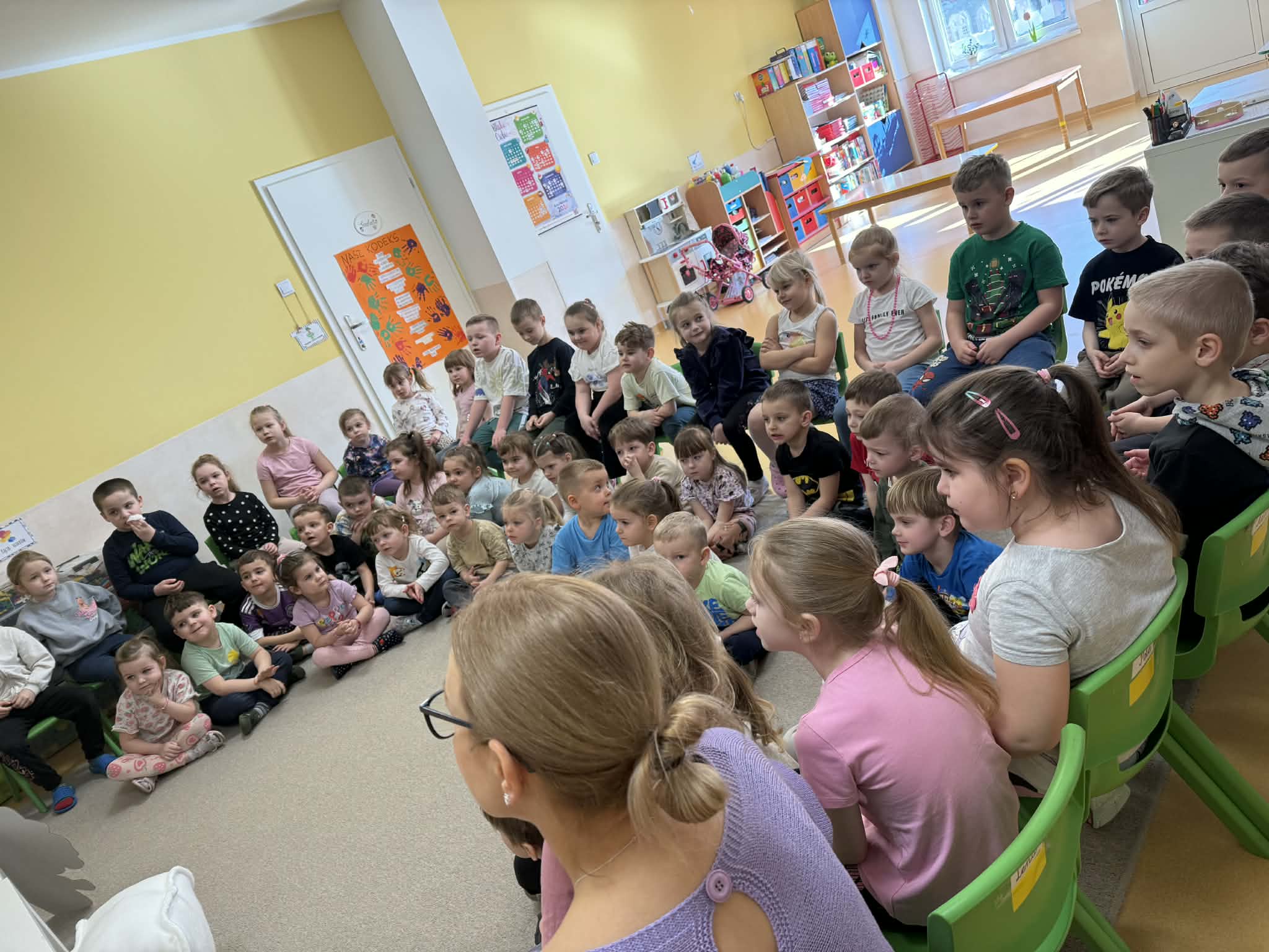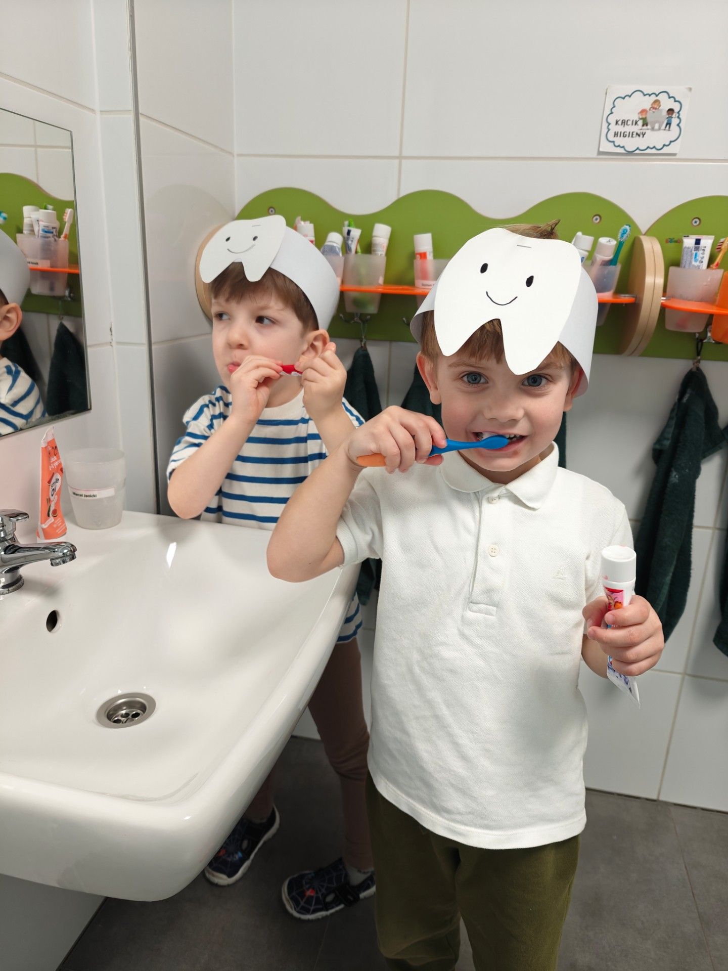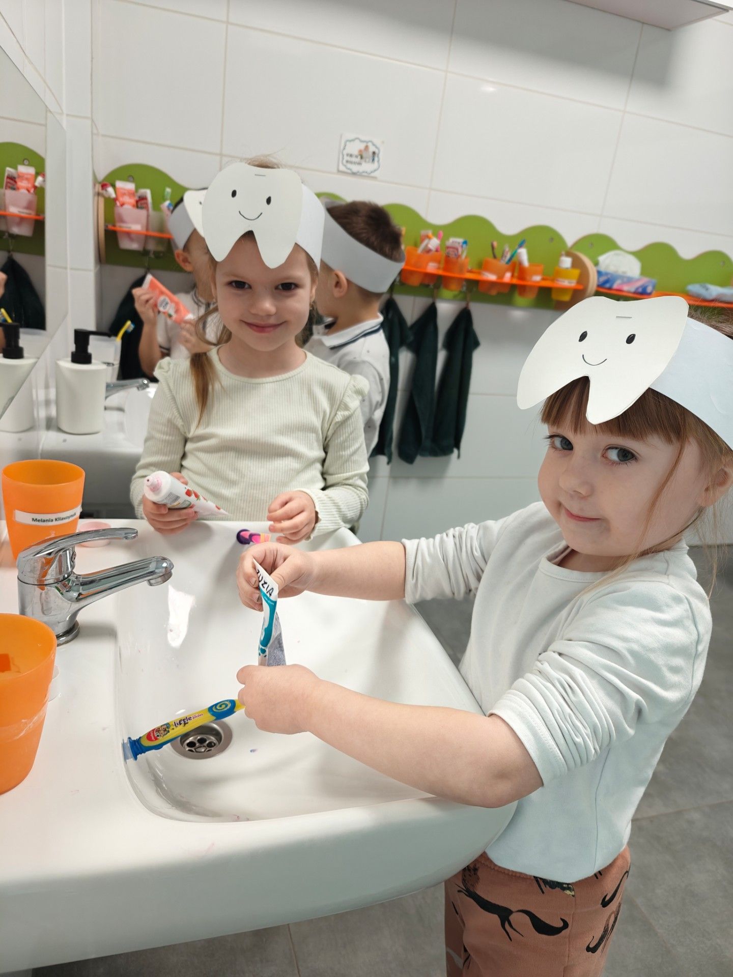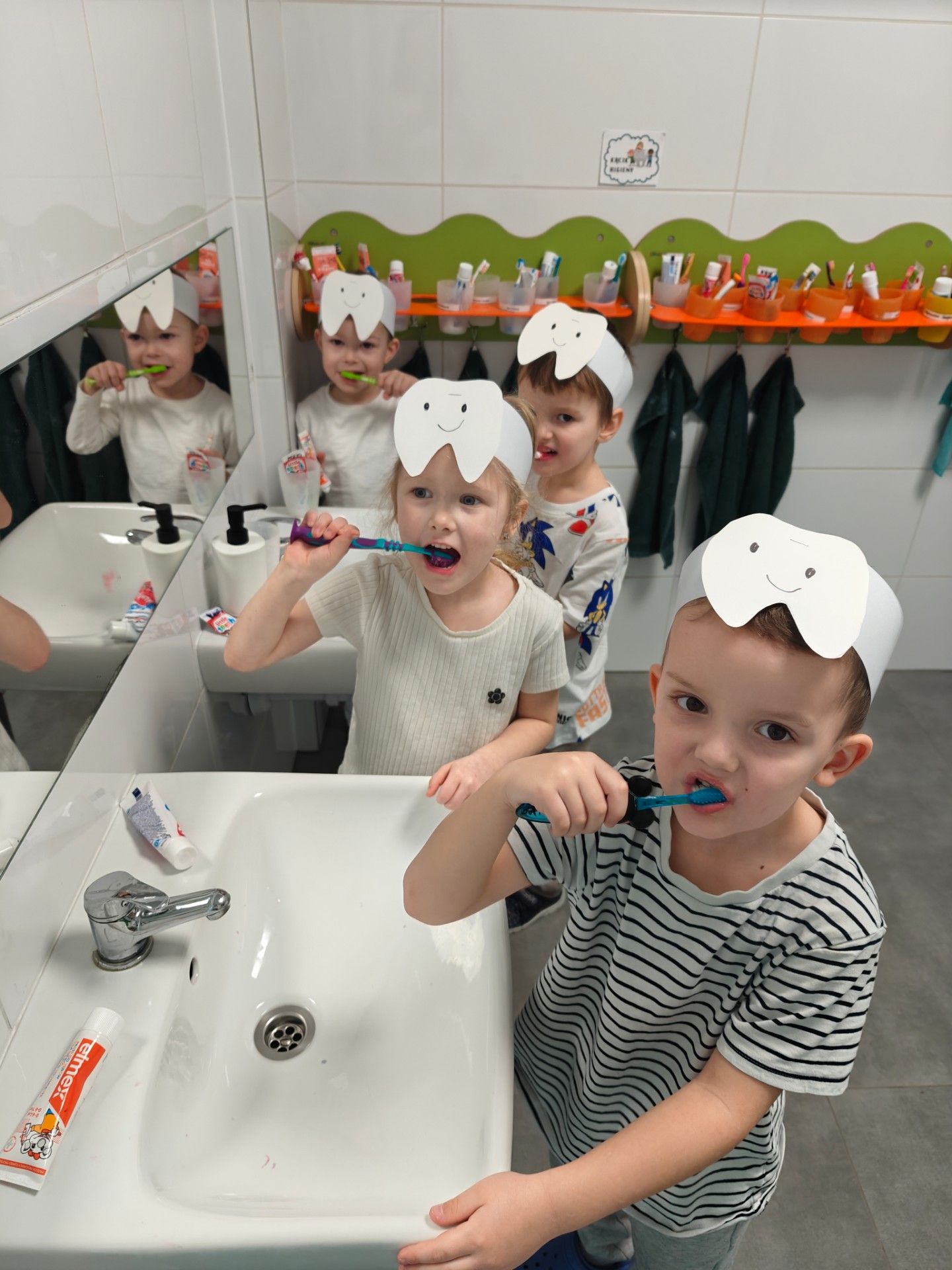 W czwartek, 05.3.2026r., w przedszkolu obchodziliśmy ,, Dzień dentysty ", z tej okazji odwiedziła nas Pani Adrianna Woźniak, która pracuje w centrum kultury i bibliotece w Piaskach. Demonstrowała dzieciom, jak dbać o higienę jamy ustnej. Bardzo dziękujemy za wizytę oraz pozostawiony prezent w formie książeczki :)